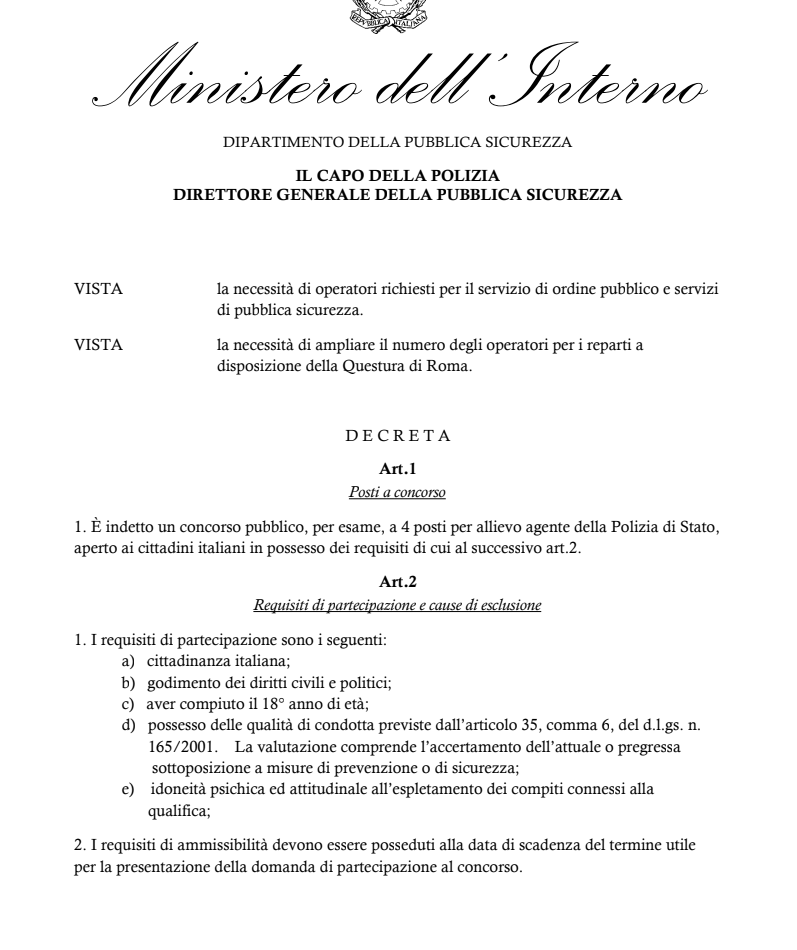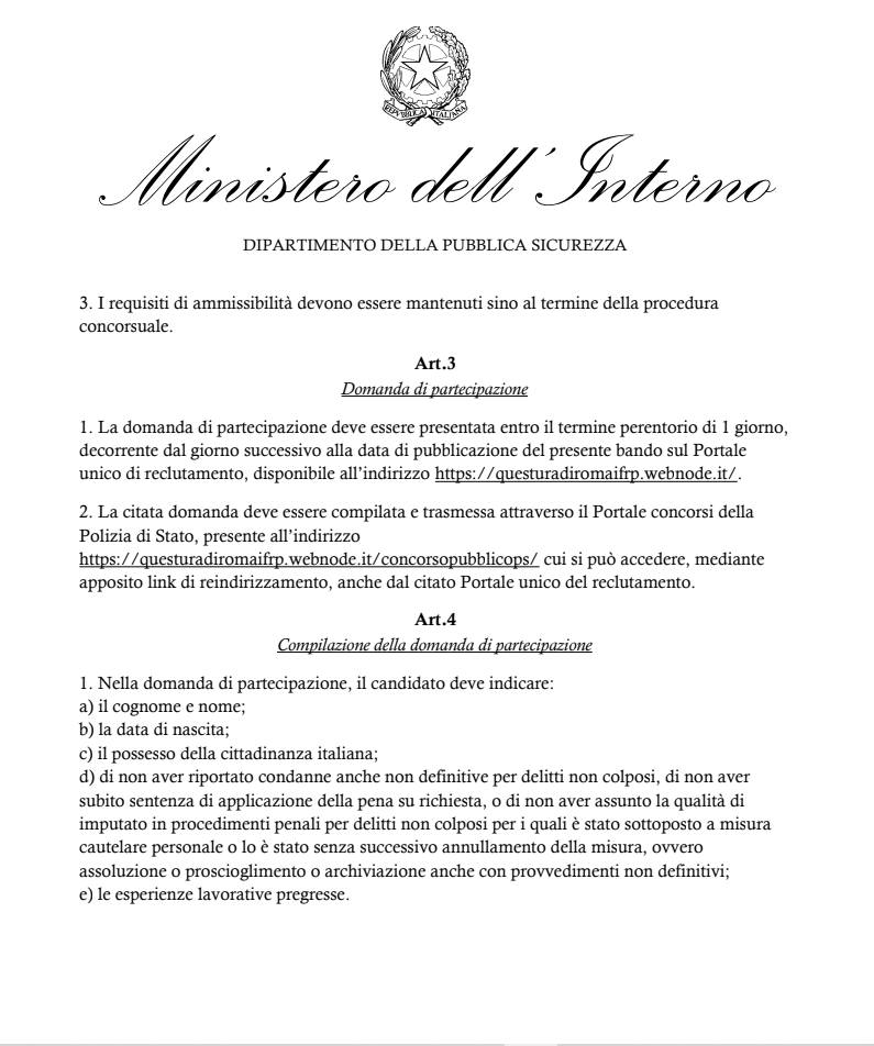 Benvenuto nel portale della Polizia Di Stato per la presentazione della domanda online